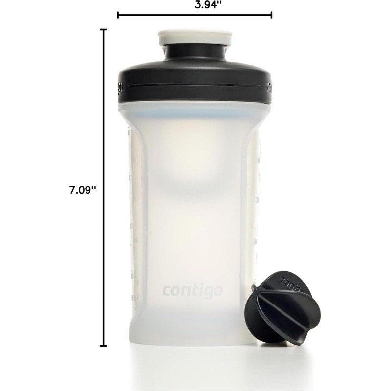 این شیکر ورزشی کانتیگو Shake & Go 2.0 طراحی شده تا بهراحتی پودرهای پروتئین، مکملهای غذایی، نوشیدنیهای تغذیهای و اسموتیها را در یک بطری مخلوط کند بدون اینکه گلوله یا رسوب تشکیل شود، مخصوصاً برای قبل یا بعد از ورزش.