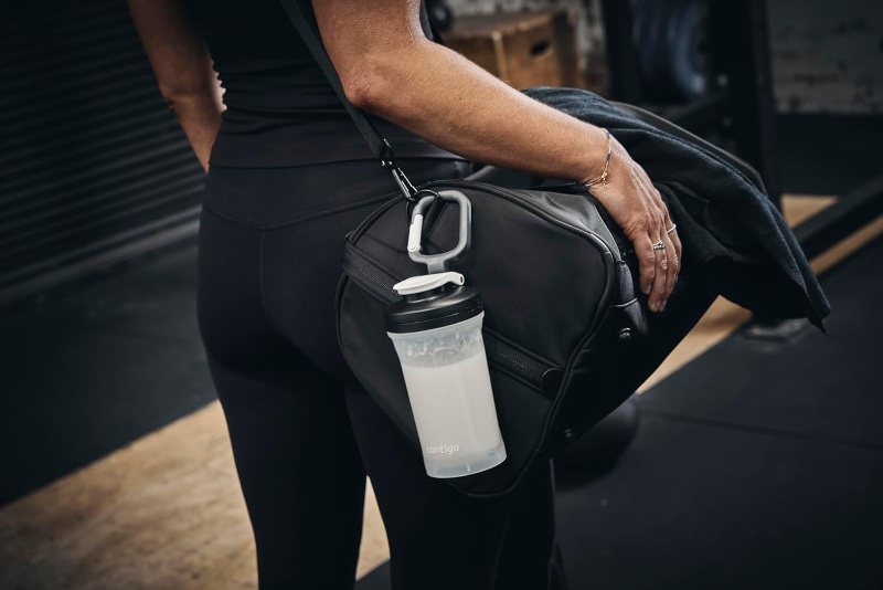 این شیکر ورزشی کانتیگو Shake & Go 2.0 طراحی شده تا به‌راحتی پودرهای پروتئین، مکمل‌های غذایی، نوشیدنی‌های تغذیه‌ای و اسموتی‌ها را در یک بطری مخلوط کند بدون اینکه گلوله یا رسوب تشکیل شود، مخصوصاً برای قبل یا بعد از ورزش.